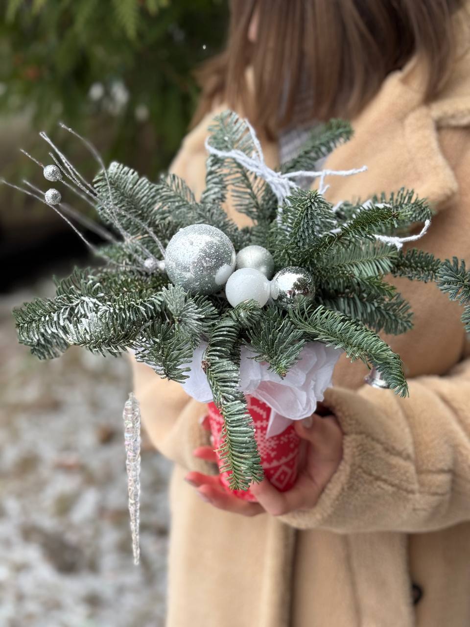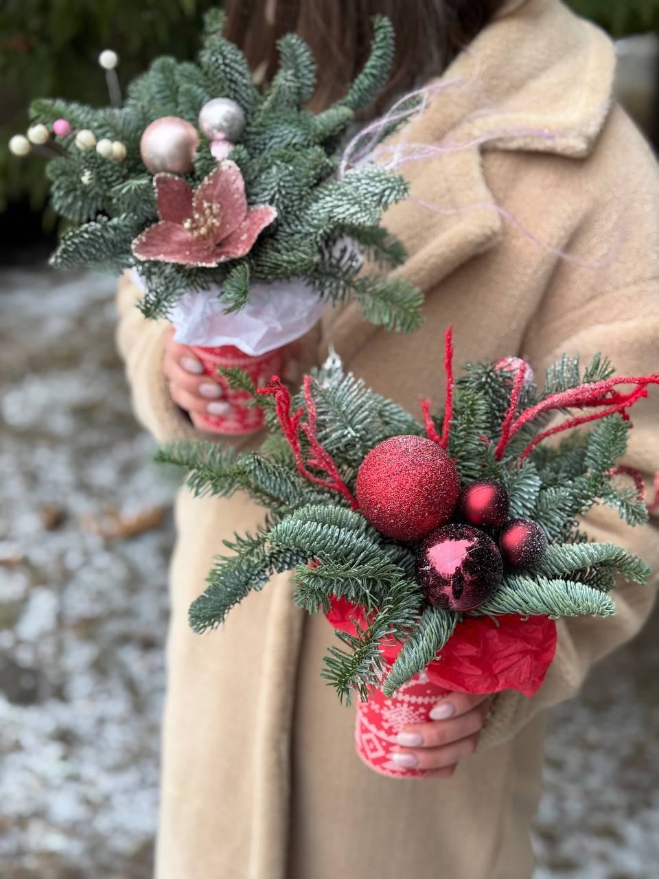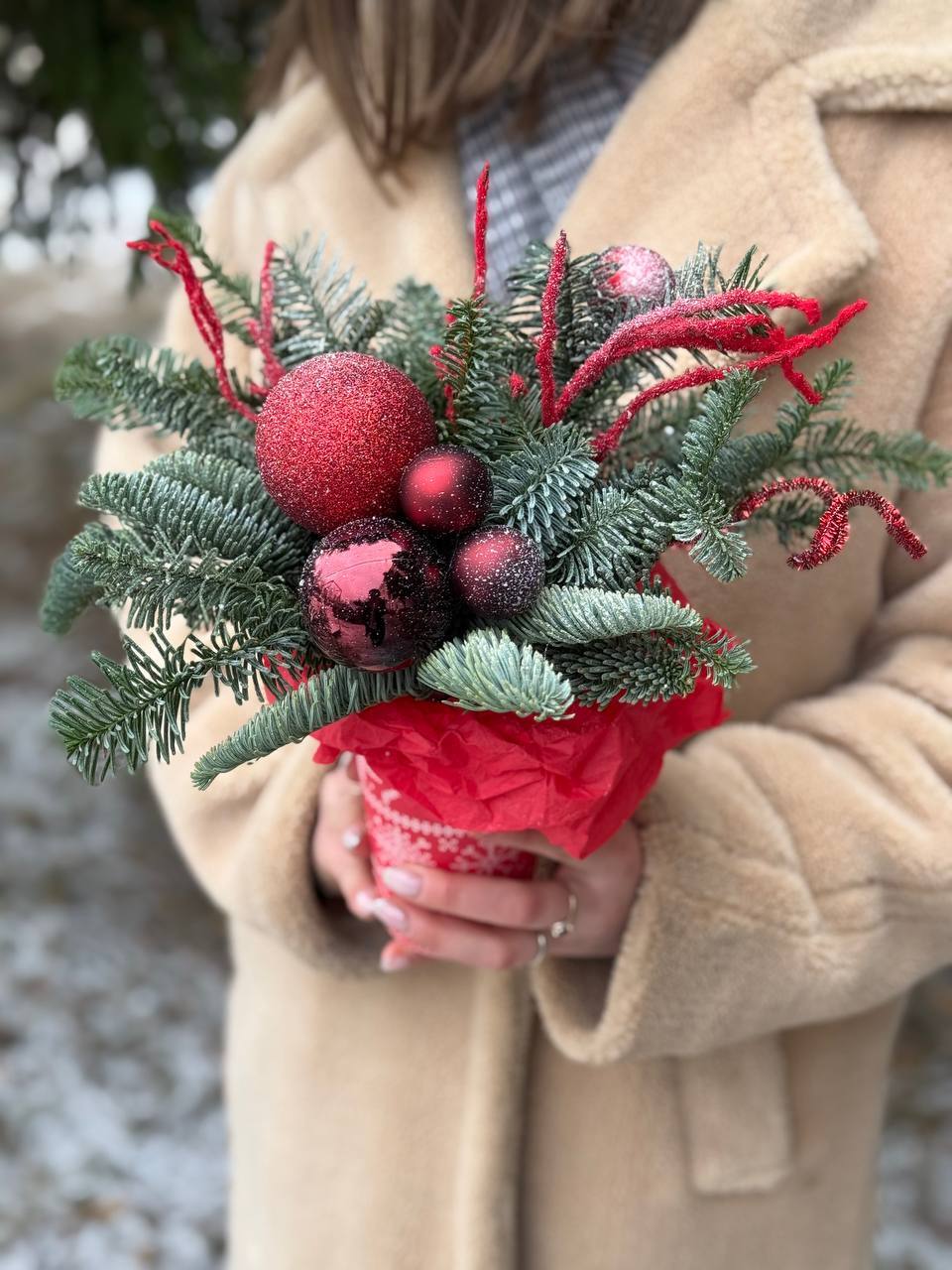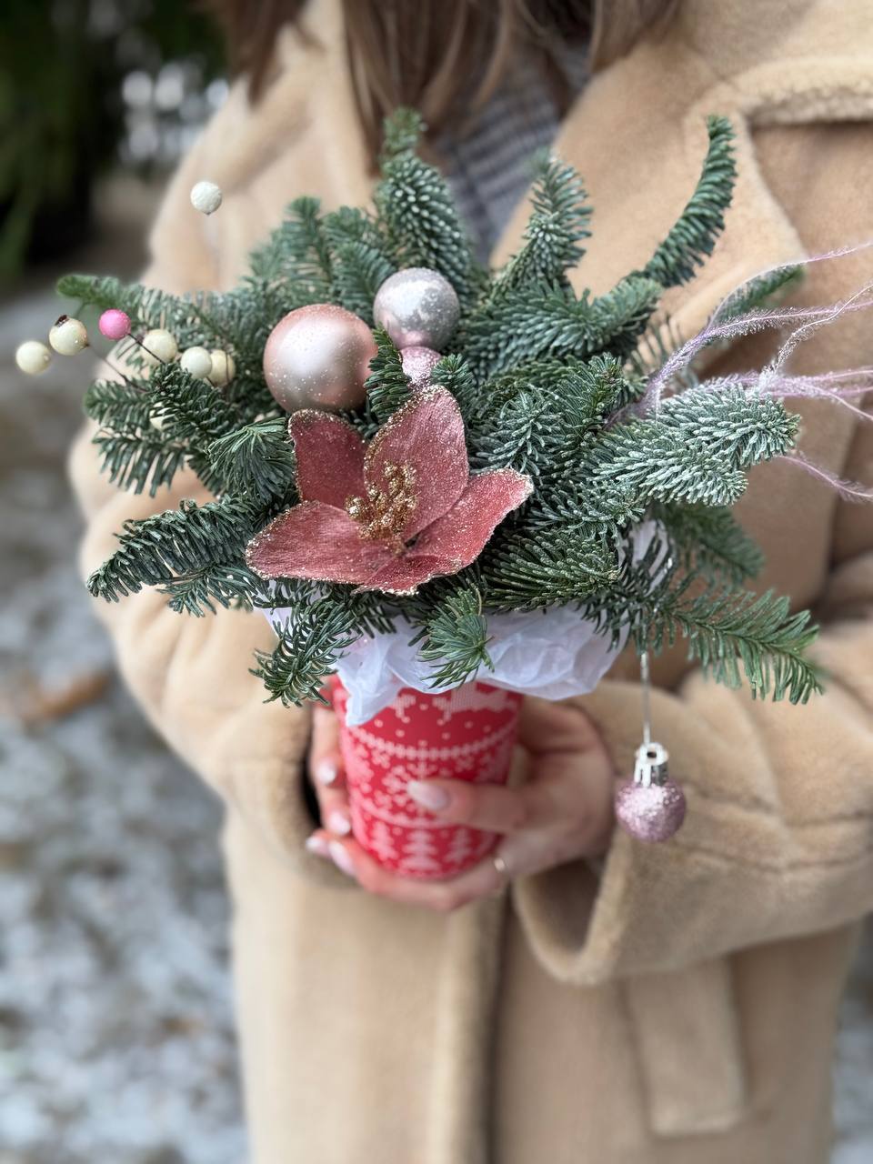 Новогодняя композиция в стаканчике, варианты композиций в наличии можно уточнить у флористов
