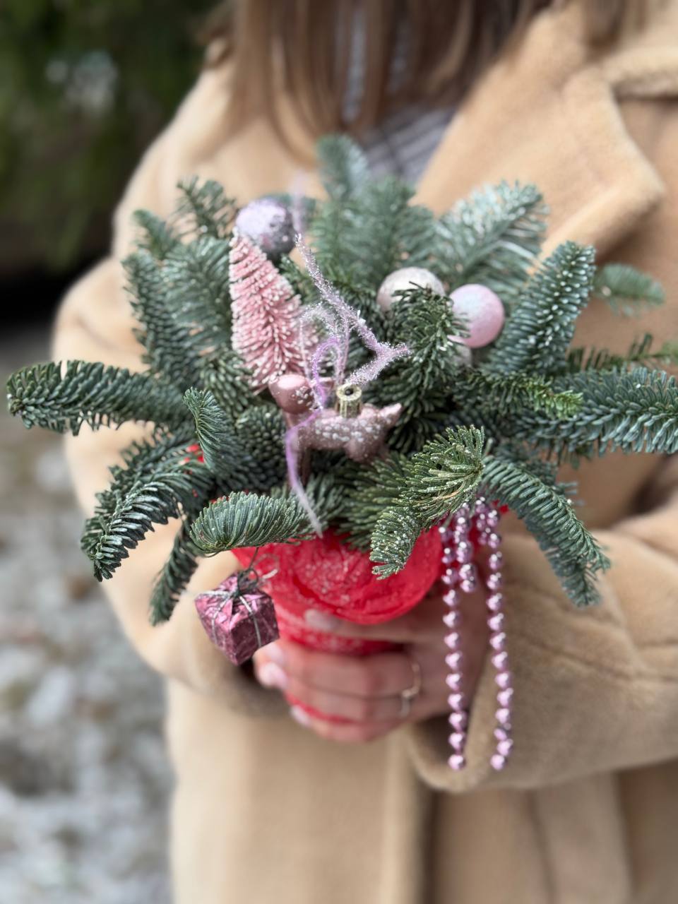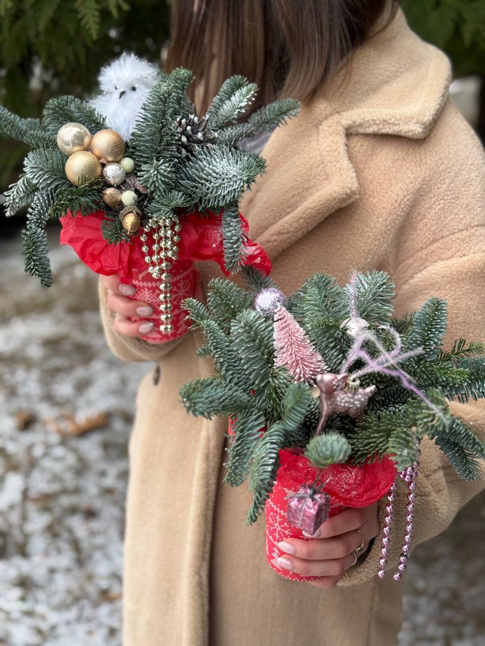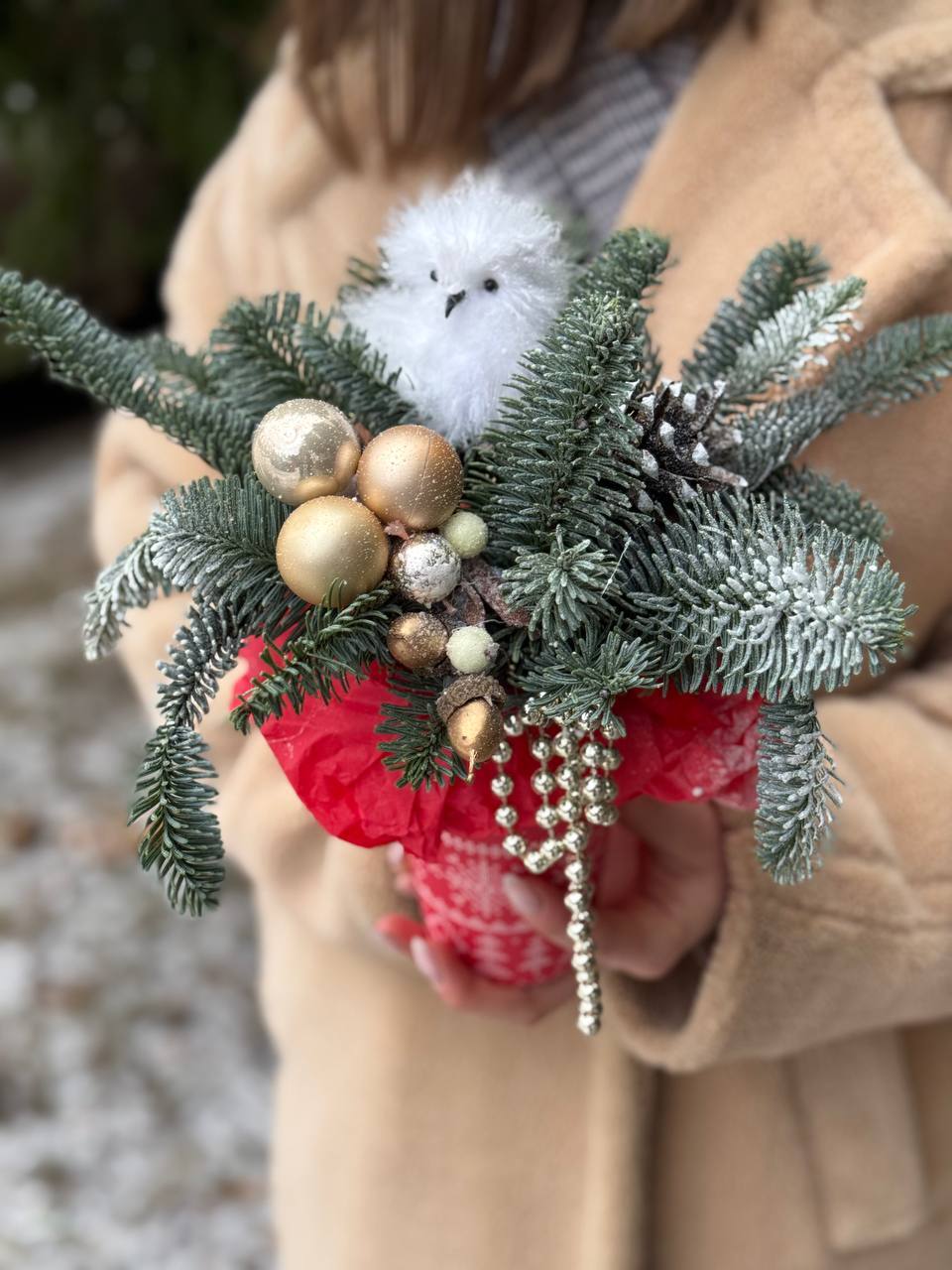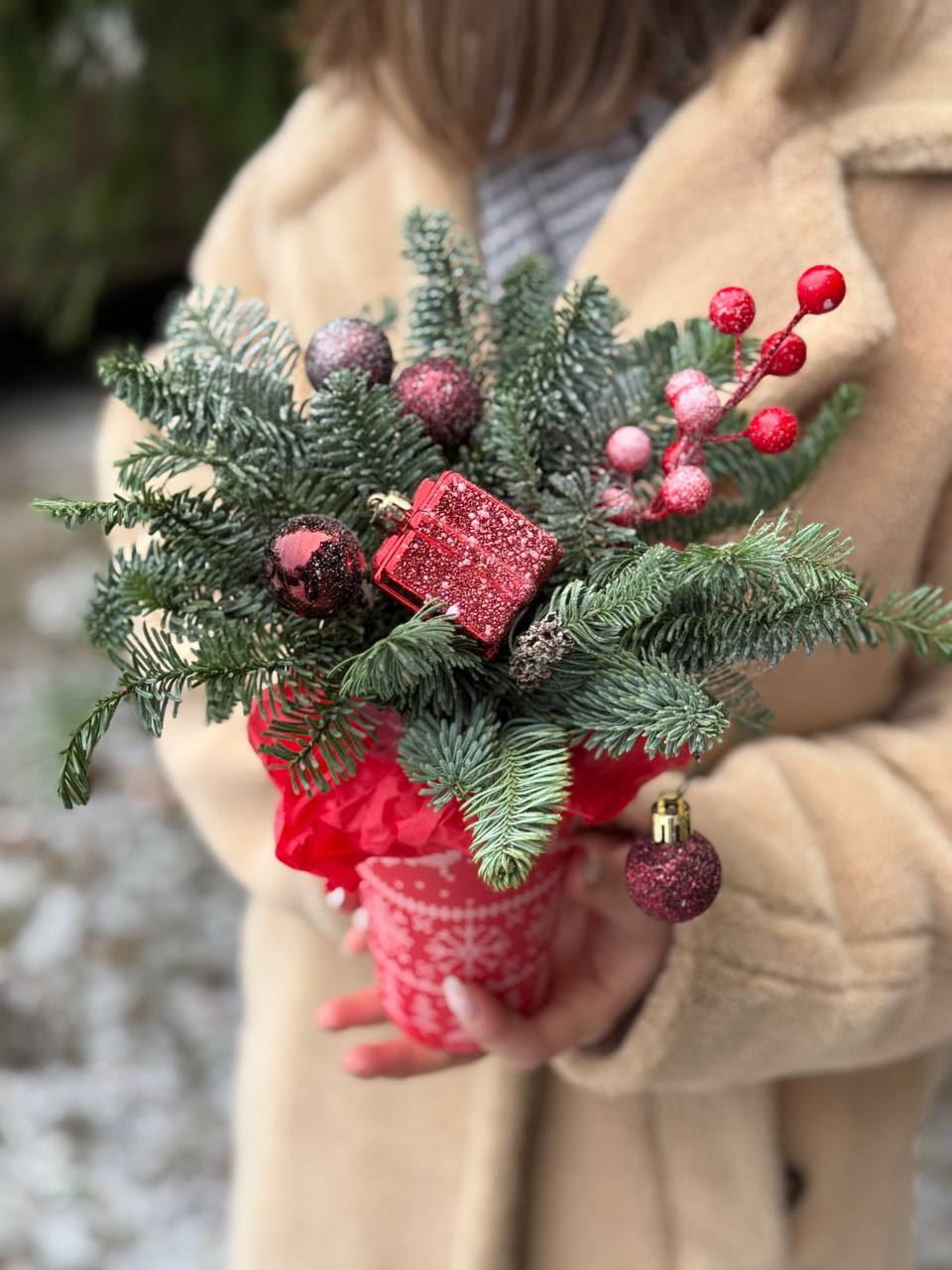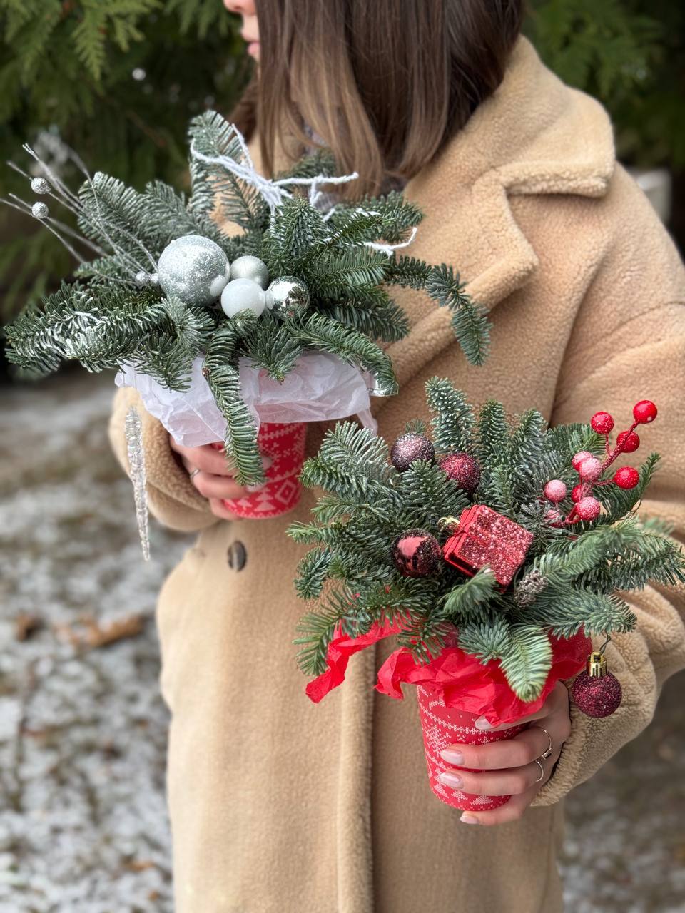 Новогодняя композиция в стаканчике, варианты композиций в наличии можно уточнить у флористов